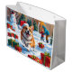 Corgi Running in Snow with Christmas Hat Large Gift Bag