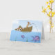 Great bit of dog humour for Father's day! A father and son Pembroke Welsh Corgi are fishing in a lake - and apparently the puppy has hooked a big one! The rowboat is throwing a huge wake behind it as the purple fish drags them through the water, and the corgi puppy couldn't be more delighted! A smaller fish (the son) points and laughs at the daddy corgi, who is peering down anxiously into the water. Funny Pembroke Welsh Corgi card for pet owners. The inside reads, "Happy Father's Day!" An original corgi animation by Susan Stoneman. All Rights Reserved.