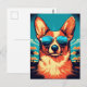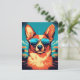 Corgi with sunglasses at a tropical beach postcard