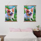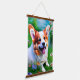 A vibrant floral background provides the perfect backdrop for a stunning canine portrait.