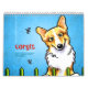 Cute wall calendar for your home, office, or gift for a dog-loving friend. Features a different original illustration by Off-Leash Art™ each month of the favourite Corgi dog breed.