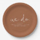 This wedding paper plate features an edgy handwritten font and modern minimalist design paired with a boho terracotta burnt orange rust and beige colour combination and the words 'we do'. These dinner plates are the perfect addition to your modern wedding, engagement party, or vow renewal. Easy edit the colours to match your colour palette and add your names and date for a personal touch.