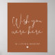This "we wish you were here" In Loving Memory sign features a bold handwritten font and modern minimal design with a bohemian burnt orange background colour. Easily change the colours and edit *most* wording to meet the needs of your occasion. This sign is perfect for your minimalist, boho, or modern wedding or event.