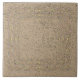 The original graphic pattern by HomeWare on this large Ceramic Tile has the overall look of cork, in a brown paper bag colour with a dark grey texture of little shapes like the holes in cork. Over this background there are wavy lines forming a square shape, repeated inside itself two more times. The lines are an overall golden colour made up of a multicolored texture, with dots centred between the corners of the square. This design, in its natural, neutral tones will work well in many different environments.