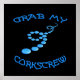 Grab my corkscrew! Corkscrew is Frisbee talk for a type of Frisbee throw. Grab is grab. Wear it proud, sing it loud, fling the flying disc and give the ultimate Frisbee gift.