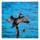 Cormorant With Outspread Wings On Blue Water Art Poster