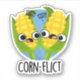 Corn-flict Funny Corn Pun features a cute pair of corn having a little conflict. Perfect pun gift for family and friends who love cute veggie corn puns