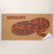 This beach towel features a realistic style illustration of a coiled corn snake in orange and red. It's ready to be personalized with a name in reddish orange lettering. Makes a great gift for pet snake owners.