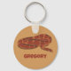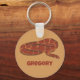 This keychain features a realistic style illustration of a coiled corn snake in dark red and orange. It's ready to be personalized with a name in dark reddish orange lettering. Makes a great gift for pet snake owners.