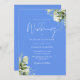 Cornflower Blue Greenery Floral QR Code Wedding Invitation
