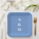 Cornflower Blue Monograms Initials Elegant Wedding Paper Plate