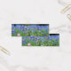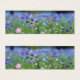 Un champ de fleurs de maïs dans les tons bleu profond et pâle, violet, lavande et rose, avec des feuilles vert pâle.