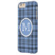 Monogrammed iPhone 6 Plus Case with cornflower blue plaid pattern