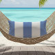 A classic wide vertical cabana or awning stripe design in tourmaline blue (a subtle shade of light grayish blue) and white. Ideal for summer entertaining on the patio or deck.
