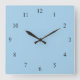Pretty kitchen wall clock of a light blue known as cornflower blue. Twelve black numbers on a plain blue background. Perfect addition for a kitchen with a blue colour scheme