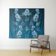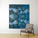 Bouquets of blue Cornflowers in watercolor with red buds and golden green leaves on a creative mix shade of a turquoise blue background