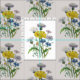 Old-fashioned botanical illustration of cornflowers in blue, yellow and white.