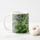 This pretty floral coffee mug features a photograph of a patch of blue cornflowers. These beautiful and delicate looking blue blooms are a joy to behold on a spring morning. The photo was taken in my back garden. The design is shown here on a baisc white mug but is also available on other styles and colours of mug.