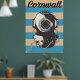 Cornwall Nautical vintage or retro style travel poster of a diving helmet.