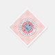 Red paper napkins showing the official Coronation Emblem of King Charles III 2023
