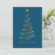 Corporate Elegant Blue Gold Merry Christmas Tree Holiday Card