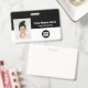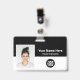 Easily personalize this Custom Employee Name Badge with Photo, Scan Bar Code and business company logo, featuring persons name, occupation, optional identity bar code, with metal clip included. A branded badge useful to identify staff, visitors or guests, docror, nurse and medical professions. A simple business design with large photo in black and white fully customizable in front and back sizes, in any colour background, sans-serif basic and modern fonts and a professional and clear look. An useful tool for corporate events, reunions, renews and celebrations. Create more corporate photo badge identification card in different colours for any category you need to identify: staff, visitors or guests. Avaiable with or without lanyard, metal clip or with retractable. No minimum order.