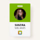Modern and professional custom corporate employee badge featured in green. Add any business, employee name, photo, logo, address, phone number, website and barcode. Available in multiple colours for business identity.