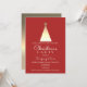 Simple modern elegant red corporate Christmas party invitation, with minimalist, geometric gold foil pine tree.