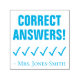 This fun rubber stamp design features the positive feedback message "CORRECT ANSWERS!" and a personalized teacher's or educator's name. It could be used by a school teacher, educator, or tutor when marking assignments, to acknowledge that a student has done well.