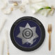 Correctional Officer Badge (Paper Party Plates)-is a graphic art design. The badge is created in silver (or gold) and black with a small touch of blue. A decorative seven (7) point silver/gold star forms the badge. Text curving the top of the badge reads: DEPARTMENT OF CORRECTIONS. Text curving the bottom reads: CORRECTIONAL OFFICER. These words sit on a solid blue/black ring. More silver/gold decorates the badge throughout. An eagle emblem with silver/gold stars sits in the centre. Smaller text in the centre reads: Seal of the State. The badge is not state specific. Under the badge is a solid blue centre. A black outer rim with silver/gold text curving around the top that reads: CORRECTIONAL OFFICER. This badge design comes in silver or gold with assorted background styles. The design is also available with a photo insert in my other zazzle stores.