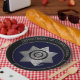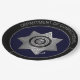 Correctional Officer Badge (Paper Party Plates)-is a graphic art design. The badge is created in silver (or gold) and black with a small touch of blue. A decorative seven (7) point silver/gold star forms the badge. Text curving the top of the badge reads: DEPARTMENT OF CORRECTIONS. Text curving the bottom reads: CORRECTIONAL OFFICER. These words sit on a solid blue/black ring. More silver/gold decorates the badge throughout. An eagle emblem with silver/gold stars sits in the centre. Smaller text in the centre reads: Seal of the State. The badge is not state specific. Under the badge is a solid blue centre. A black outer rim with silver/gold text curving around the top that reads: DEPARTMENT OF CORRECTIONS. This badge design comes in silver or gold with assorted background styles. The design is also available with a photo insert in my other zazzle stores.