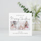Mini Élégant Script 2 Photos Joyeux Noël Card. Deux de vos photos préférées et personnalisez avec votre salutation et vos noms en bas. Joyeux Noël est dans un script stylé avec un effet d'ombre et recouvre légèrement vos photos.