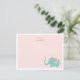 Un éléphant bébé sur fond rose fait une carte de note adorable. Le dos de la carte a un motif de marguerite global. Illustrations originales de Boatman Geller.