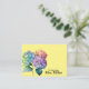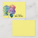 Cartes de notes personnalisées avec aquarelle illustration de fleurs colorées d'hydrangée et texte personnalisable sur un arrière - plan jaune ensoleillé