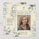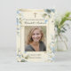 Doté d'une belle carte de prière photo de commémoration funéraire catholique au design floral bleu et de la Bienheureuse Mère Marie tenant le Bébé Jésus. Tout le texte et les polices peuvent être modifiés.