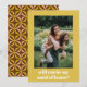 Posez la question à votre servante d'honneur avec style avec ce carte photo rétro moderne. Doté d'un cadre jaune joyeux, d'une photo personnalisable et d'un motif géométrique audacieux au dos, cette carte est parfaite pour demander à votre meilleur ami de se tenir à vos côtés lors de votre grand jour. Personnalisez-le avec votre photo préférée et un message sincère pour rendre le moment spécial.