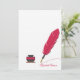 Un carte pour notes de papeterie personnalisé avec une quill rouge et inkwell contre un arrière - plan blanc. Une façon classique et élégante de vous express.<a href='http://www.freepik.com/free-vector/background-with-inkwell-and-pen-of-world-press-freedom-day_1097013.htm'>Conçu par Freepik</a>). <br/>() La carte est facile à customiser avec votre libellé, police, couleur de police, options de forme de papier et le choix de six types de papier.<br/>() Pas exactement ce que vous cherchez? Tous nos produits peuvent être conçus sur mesure pour répondre à vos besoins sans frais supplémentaires.<br/>() Il suffit de nous contacter à heartfelthelper@gmail.com .<br/>() Coordination des produits disponibles : Il suffit de nous demander!
