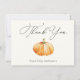 Carte de remerciements avec citrouille orange. Idéal pour un mariage ou un baby shower. Personnalisez avec vos informations ou cliquez sur "Cliquez pour customiser plus loin" pour modifier les styles, la taille et les couleurs des polices.
