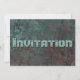 Invitation with a cool corroded metal effect printed texture in shades of green and brown. A customizable design for you to personalise with your own text, images and ideas. Please note that this is a printed digital art image, it does not shine or contain real metal.
