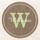 Stylish pulp board paper coasters done in a brown corrugated cardboard look, with graphics of a light green dotted circle around the outside edge. Personalize the large light green one letter monogram and white script text to suit your needs. Great for anytime use and makes a nice gift idea.