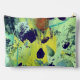 Abstract art lights up this bag in colours of light green, yellow, and dark blue.