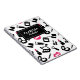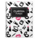 Chic notebook with a pattern in pink, black, and white of cosmetic products, and your name.