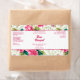 A label for cosmetics and/or soap products with a background of roses. This label contains space for your product name, business name, product weight, ingredients, instructions, social media, and business address. This label measures 3.75 inches by 2 inches (95 mm by 51 mm) and is suitable for bottles with a diameter of 1.2 inches (31 mm) or more such as 4 oz (120 ml) bullet, cylinder, and boston round bottles. It can also be used for cosmetic jars and other types of cosmetics packaging.