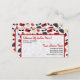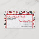 A cosmetologist / salon business card featuring a background design featuring illustrations of perfume bottles, purses, rubies, and retro cat eye sunglasses. Design has a red colour scheme. Use the back to write appointment information.