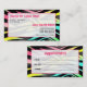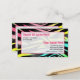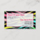 A cosmetologist / salon business card featuring a neon zebra print background. Personalize the front with your business contact information. Use the back to write appointment information.