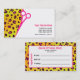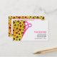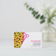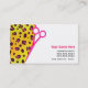 A cosmetologist / salon business card featuring an orange leopard design on front and back. Front features illustration of pink scissors. Personalize the front with your business contact information. Use the back to write appointment information.