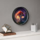 The size of the clock is dramatic and the abstract alcohol ink design is soothing and intricate at the same time. I chose the black frame that adds pop to the blue and gold design. The gold printing would be better in a slightly darker or larger font. I love it and I’m looking for just the right place in ny new apartment. I would recommend this clock for a personal gift or a present. I feel that the quality is excellent for the money! I’m a bit of a clock nut so I’m pretty particular about my purchases. The clock is larger in diameter than many if the clocks I have, so it stands out very well. I think a slightly darker printing color and a moderately larger size would best suit a professional decor or add more impact in a work place item.