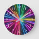 The Cosmic Burst Wall Clock features a dynamic explosion of neon hues that pulse outward from the centre.