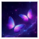 Let your imagination take flight with this enchanting design featuring two glowing butterflies gracefully dancing through a magical galaxy. Bathed in vibrant hues of violet, pink, and blue, these ethereal butterflies radiate serenity and wonder against a starlit cosmic backdrop.