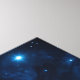 Two ice cream cones, one a swirl of purple and blue, the other a vanilla soft serve with purple and gold sprinkles, hover against a backdrop of stars and nebulae. A smaller cone floats nearby. They rest on a waffle.